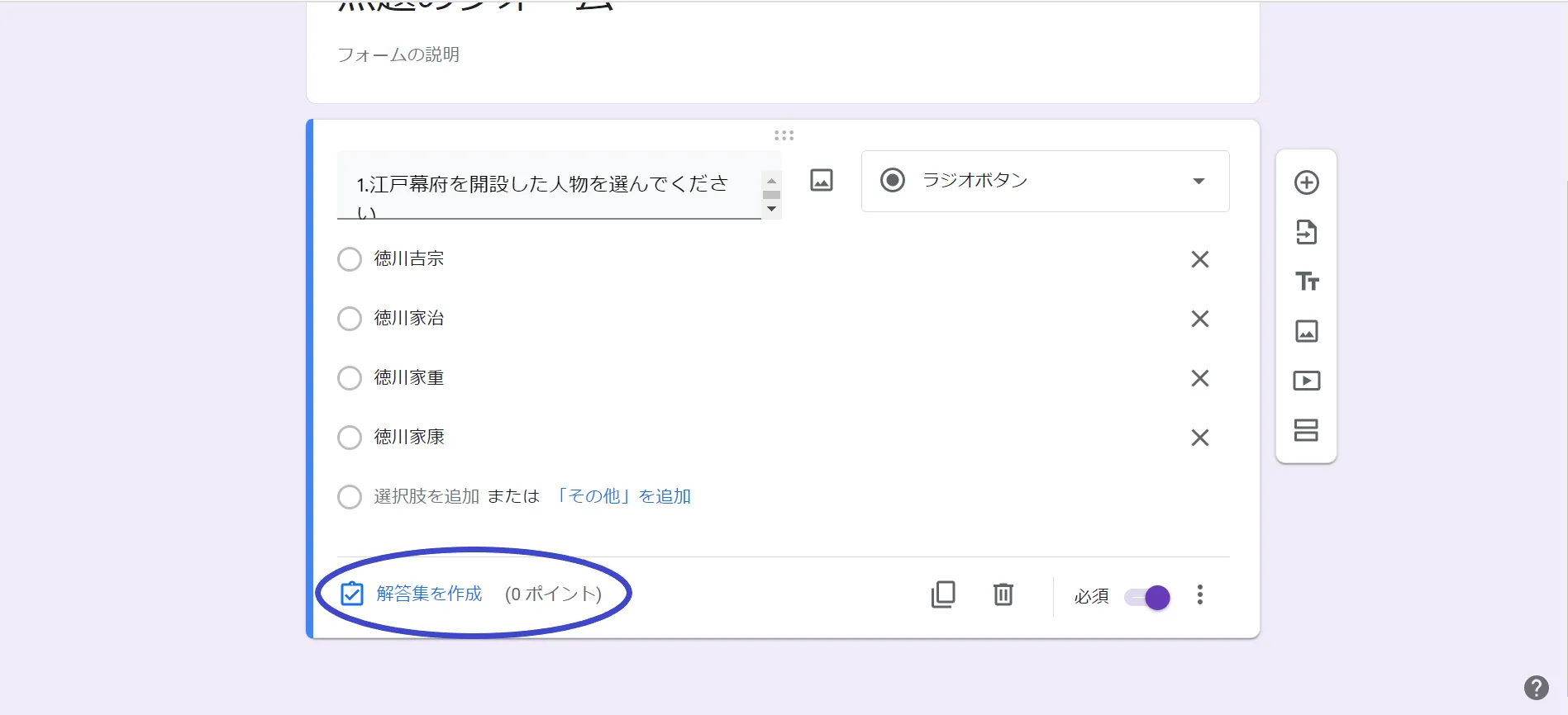 右側の下⽮印のアイコン(下図⾚丸)から「記述式」を選択します.