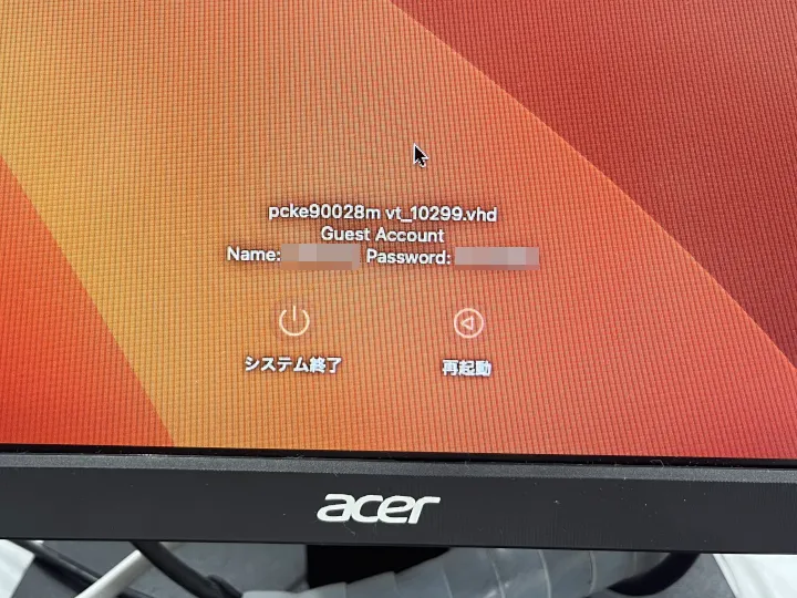 3. Mac環境が起動するとログイン画面が表示されます.ログイン画面に記載されているゲストアカウントのユーザー名とパスワードを入力して,Mac環境にログインしてください.