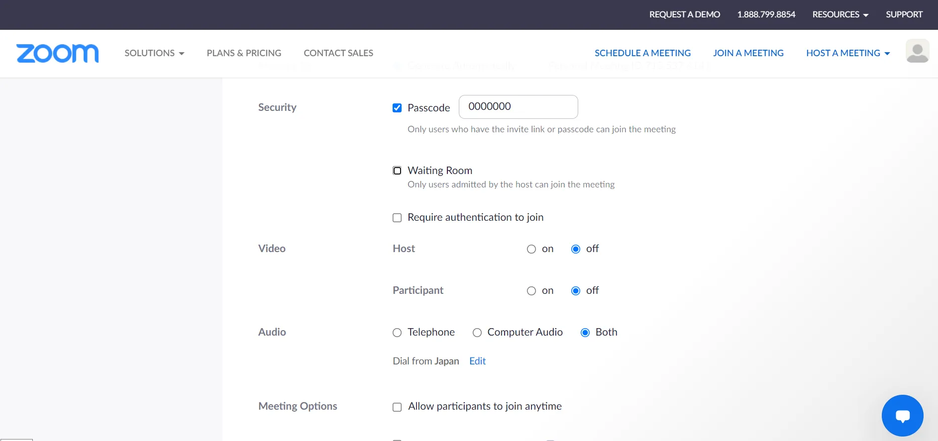 You can restrict access to a Zoom meeting room by editing the following fields (1) to (3).