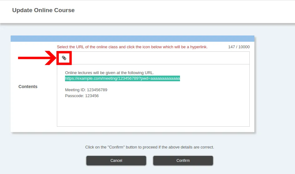 If you conduct online classes, use the Online course information section to provide details such as URLs for accessing online classes.