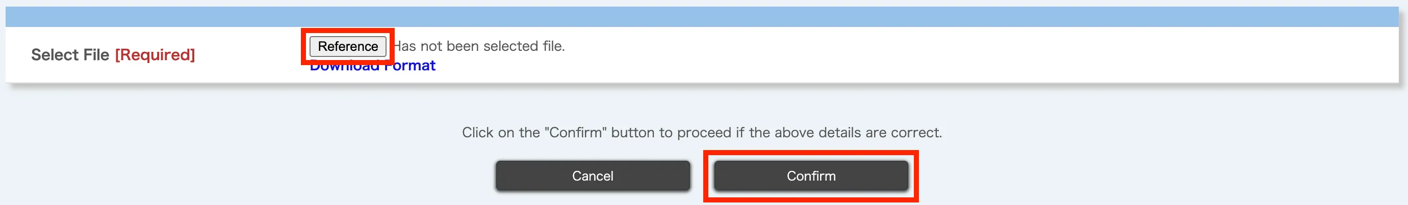 After selecting the Excel file you entered by clicking on the “Reference” button on the UTOL screen, click the “Confirm” button to proceed.