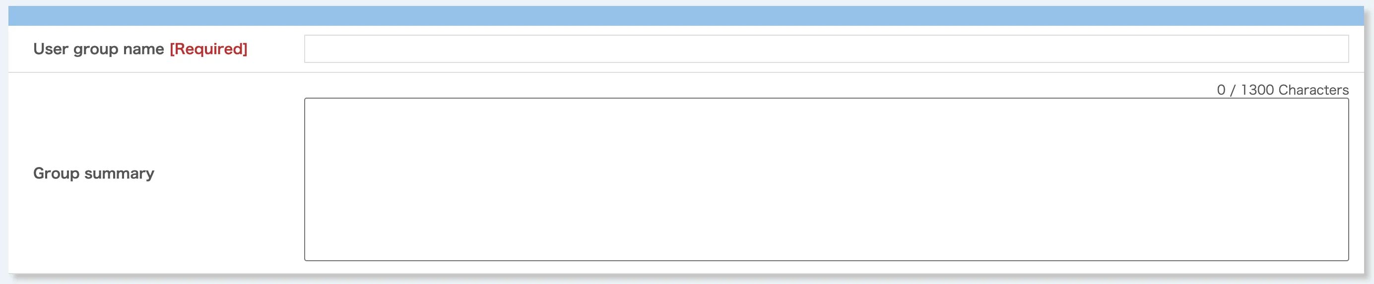 Enter the “User group name” and “Group summary” (optional). This information will be used to distinguish between user groups later.