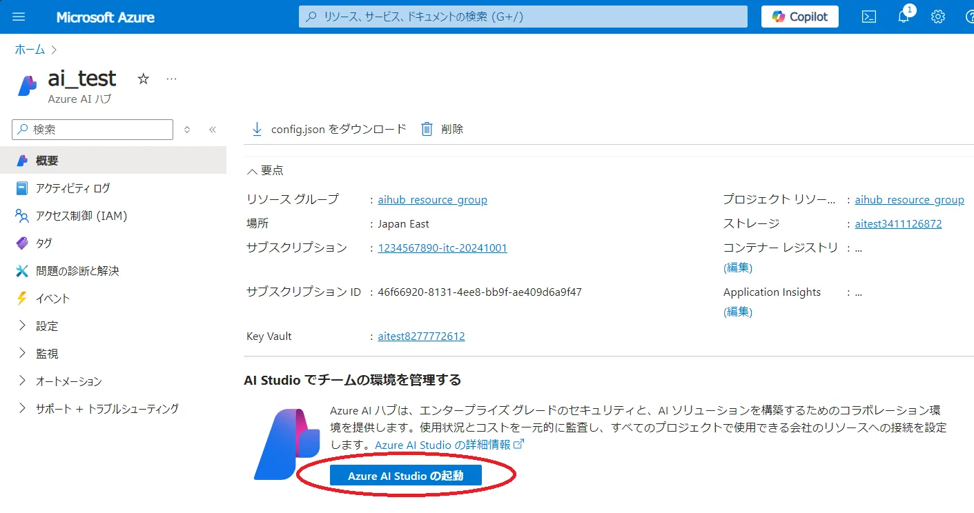 AI ハブ のトップページに遷移するので,Azure AI Foundry の起動をクリックしてください.
