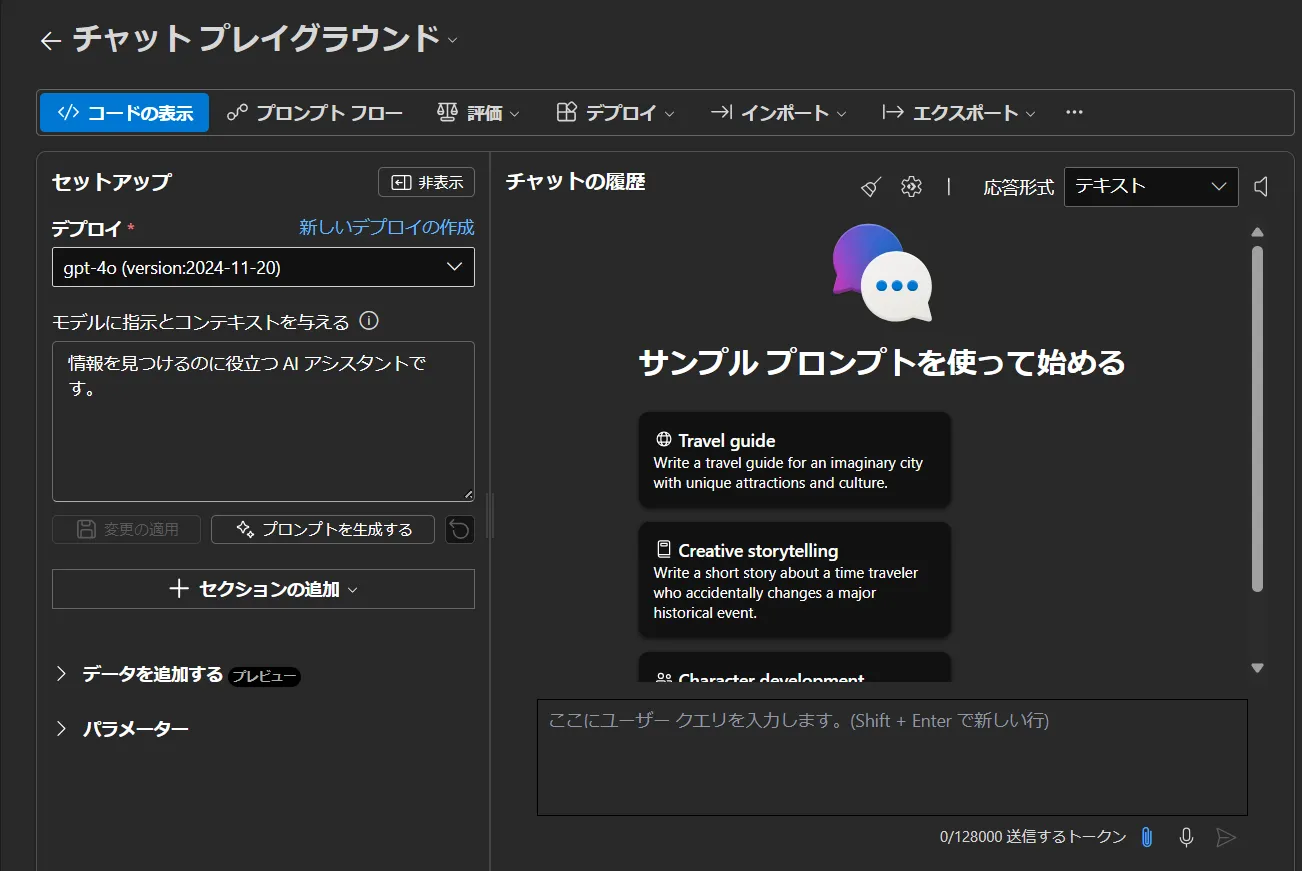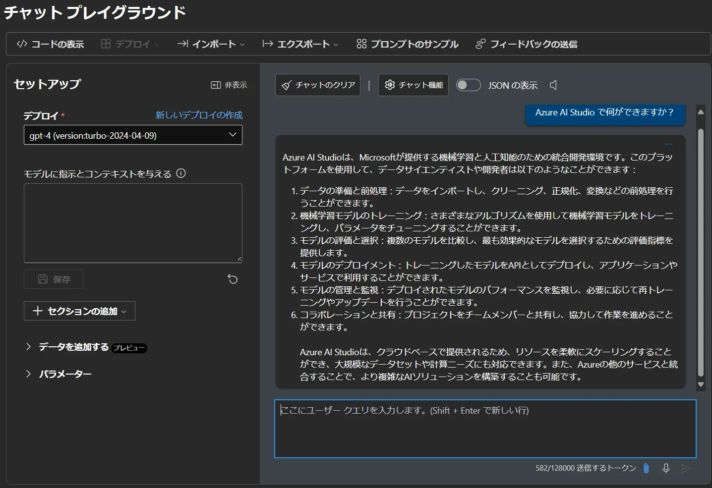 • 下図のようなチャットプレイグランドが表示されたら完了です.