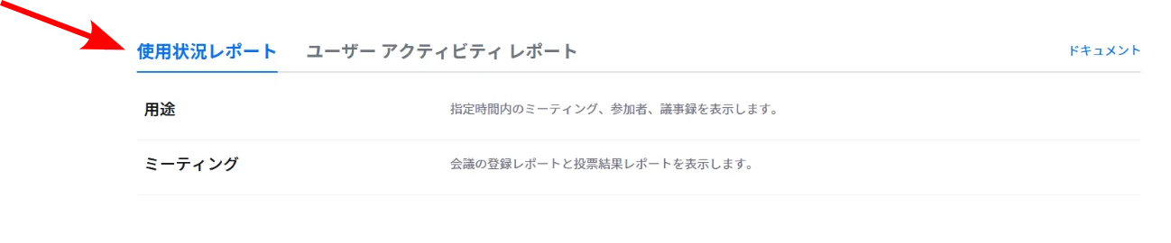 3. 「使用状況レポート」タブを選択してください.