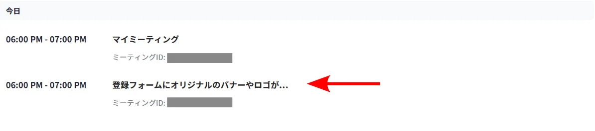 2. 自分のスケジュールしたミーティングが,リストとして表示されます.バナーやロゴを登録用ページに追加したいミーティングの名前を押してください.