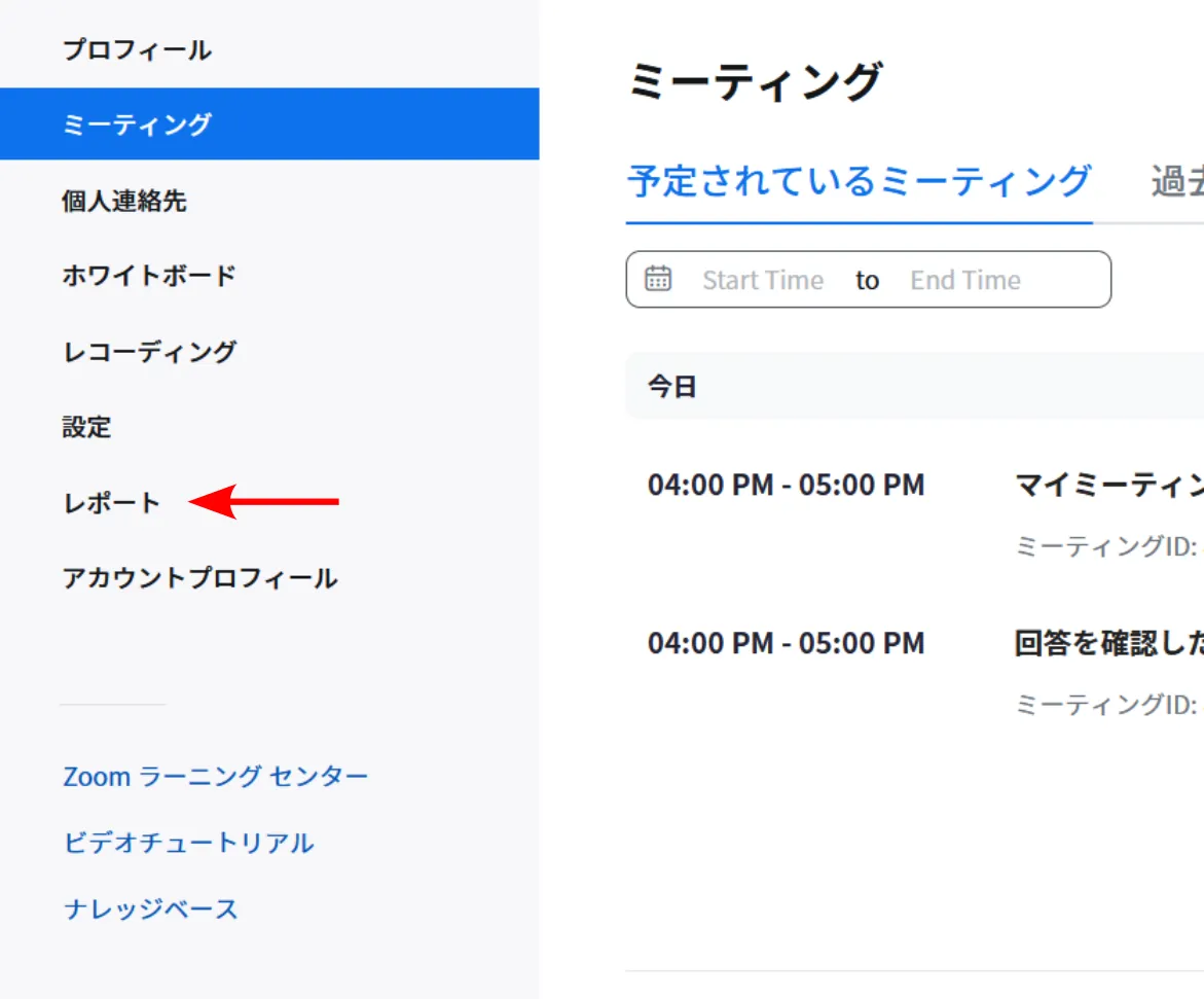 2. 自分のスケジュールしたミーティングが,リストとして表示されます.登録者の回答を閲覧したいミーティングの名前を押してください.